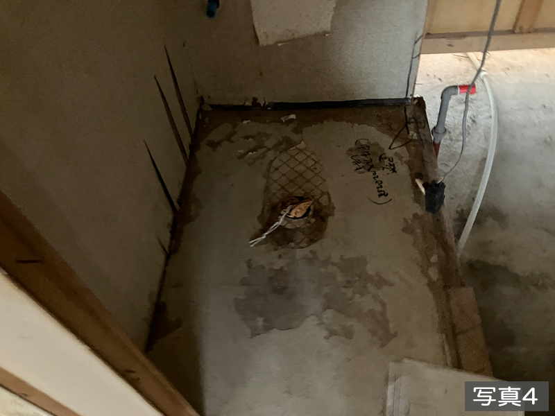 新たに枠組み施工、床張貼り ユニットバス新規設置